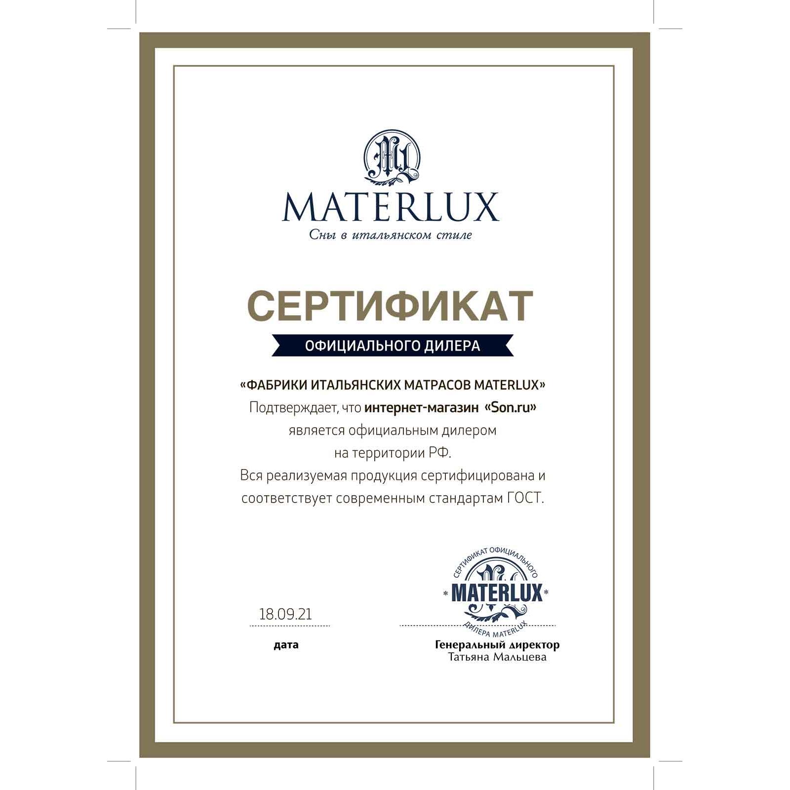 Materlux – официальный бренд-производитель данного матраса. Марка была основа в Италии более 70 лет и с тех пор прочно заняла позиции лидера. С момента создания до наших дней производство контролирует одна семья. Вот почему бережное отношение к традициям и подбору материалов – это естественное состояние бренда.