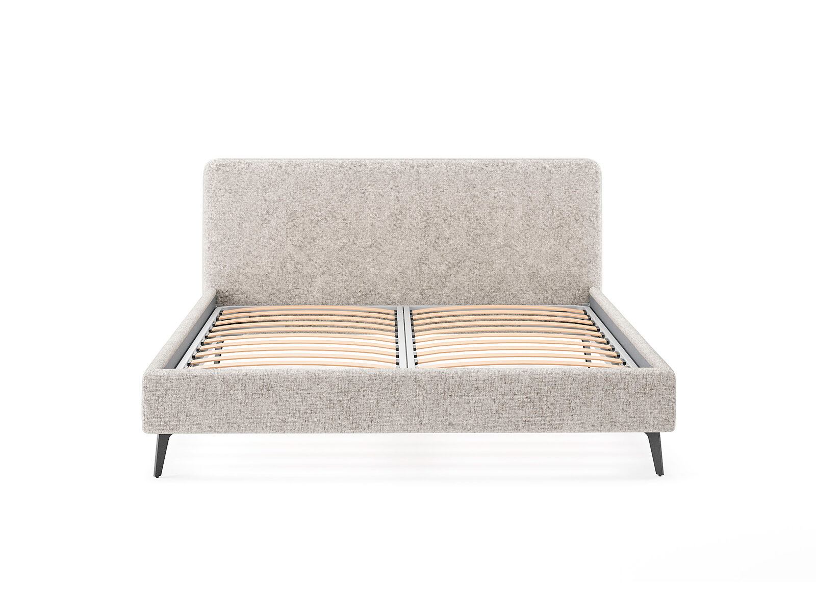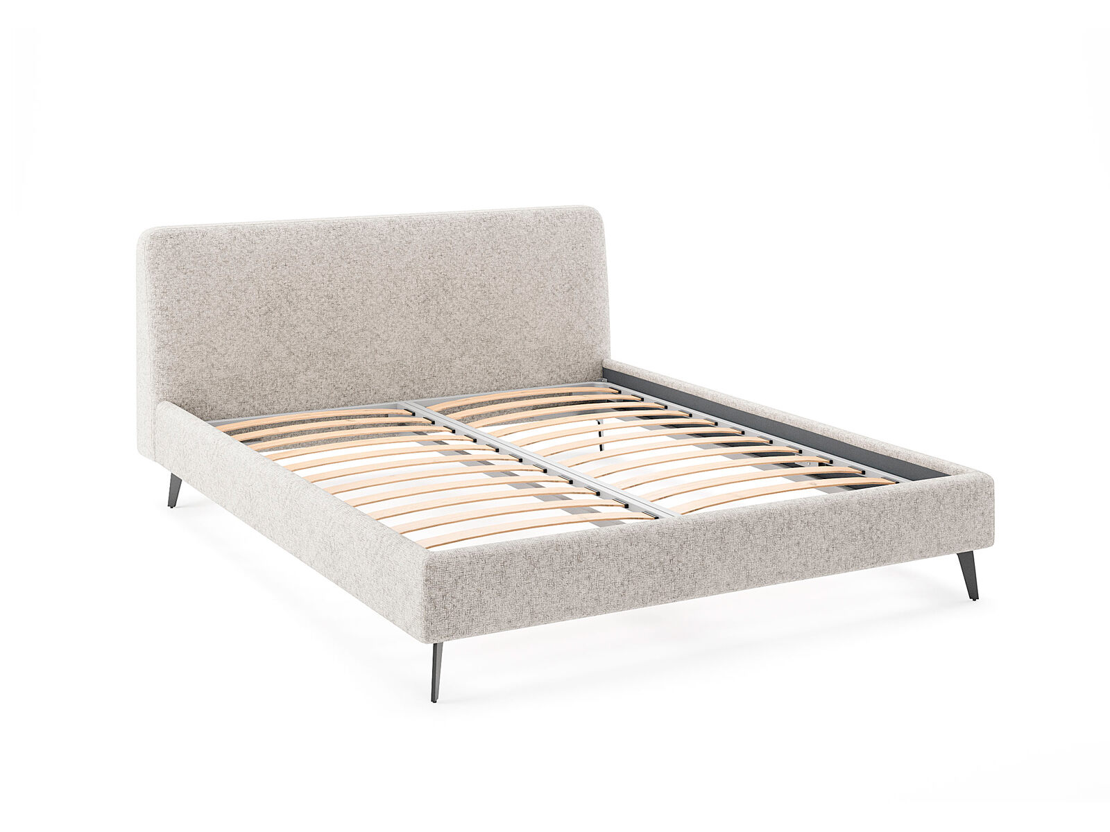Кровать комплектуется металлическим основанием (без опор), которое имеет 13 рядов встроенных березовых ламелей на каждое спальное место, обеспечивая равномерное распределение нагрузки.