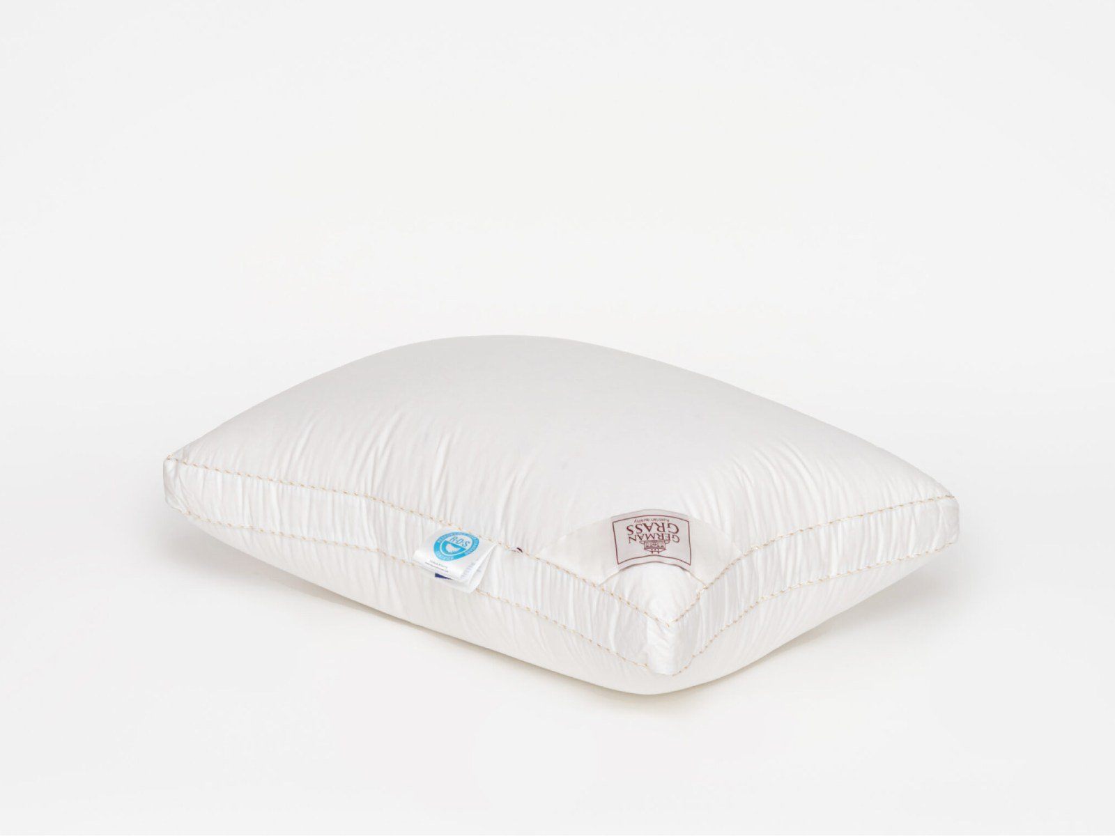 Немецкий хлопковый сатин высочайшей плотности соткан из тончайших нитей (Premium Satin – Nе 200/200 485 ТС) и прошел финишную обработку SanProCare® Sensitive, обеспечивающую усиленную гигроскопичность и придающую ей «пуховую мягкость». Особо тонкий, мягкий и «нешуршащий» чехол обладает повышенной износостойкостью и предотвращает проникновение пылевых клещей внутрь изделий. Наполнителем служит пух высочайшего качества, отобранный на гусиных фермах Сибири, которая, по утверждению биологов, является зоной проживания гусей, носящих пух максимально больших размеров, что, безусловно, влияет на пуховую массу положительно и наполнитель имеет повышенный коэффициент упругости (Fill Power), достигающий значений в 850 ед.
