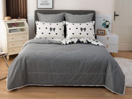 В комплекты комфортеров с одеялом Бернадетт входят наволочки, простыня и легкое всесезонное одеяло. Оцените это современное и очень удобное решение, которое идеально подходит тем, кто не любит возиться с пододеяльниками.