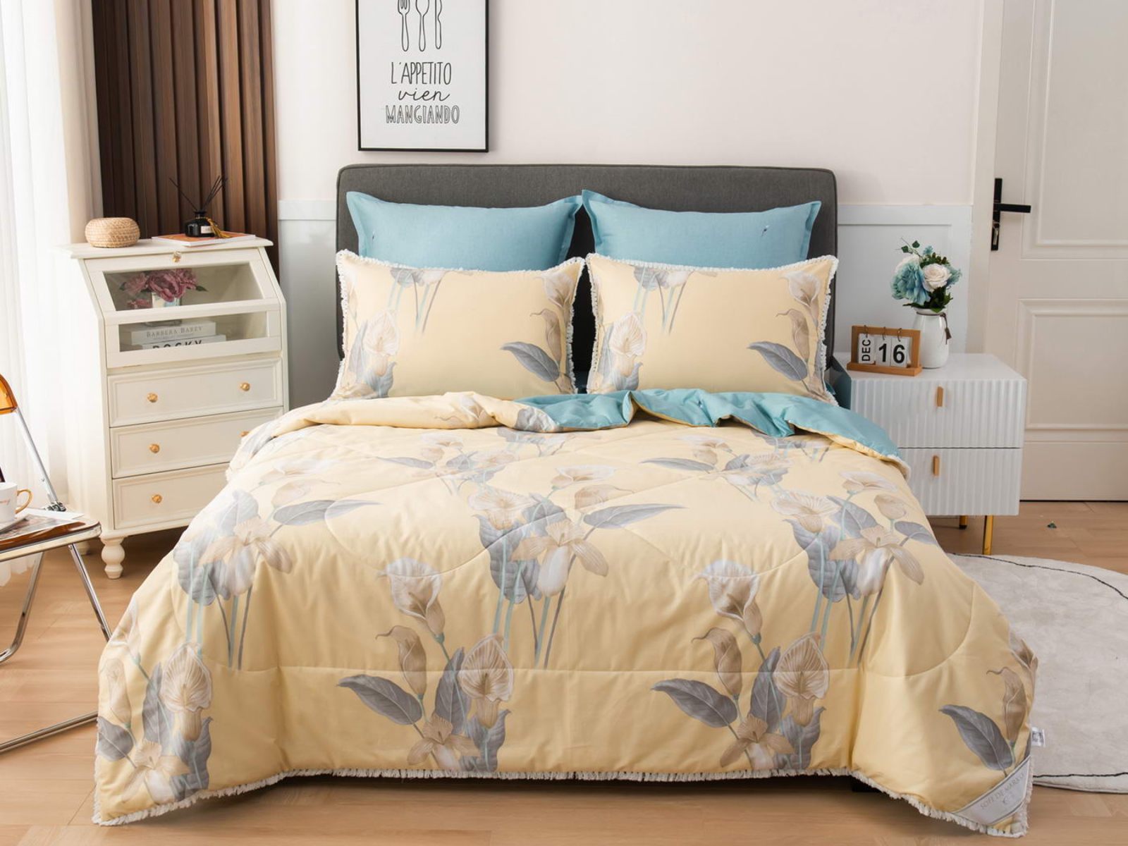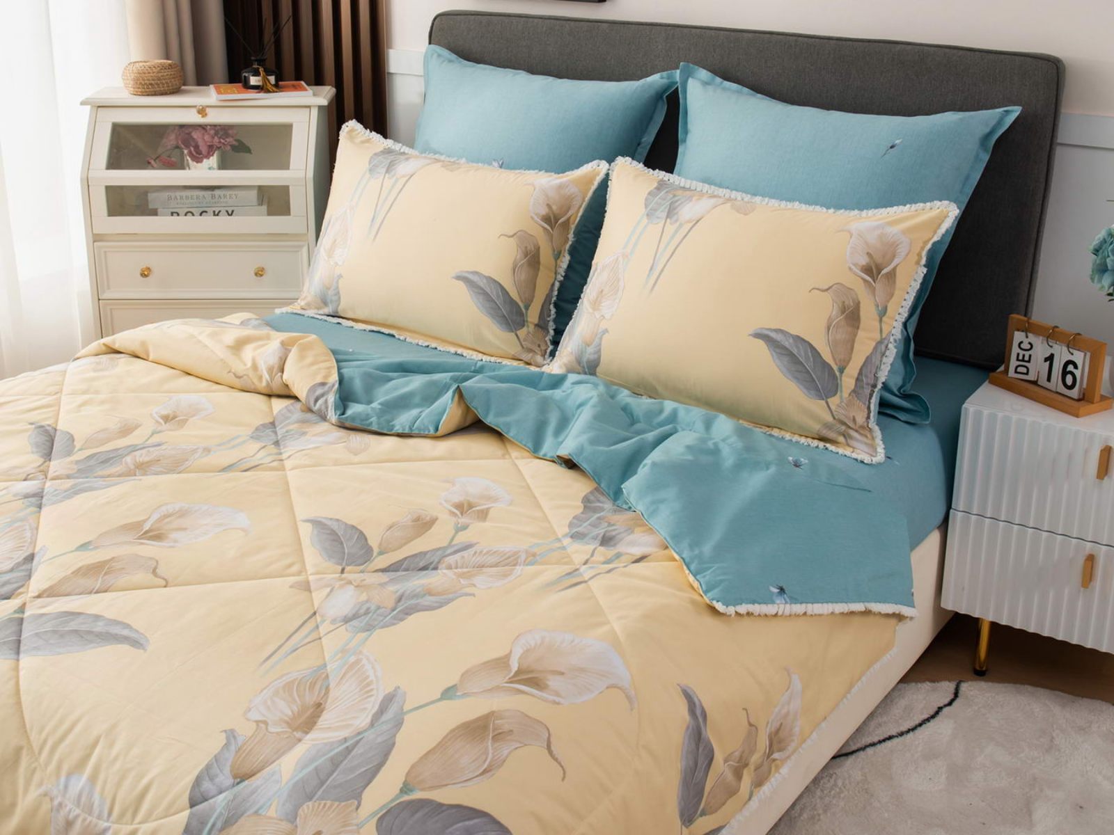 В комплекты комфортеров с одеялом Бернадетт входят наволочки, простыня и легкое всесезонное одеяло. Оцените это современное и очень удобное решение, которое идеально подходит тем, кто не любит возиться с пододеяльниками.