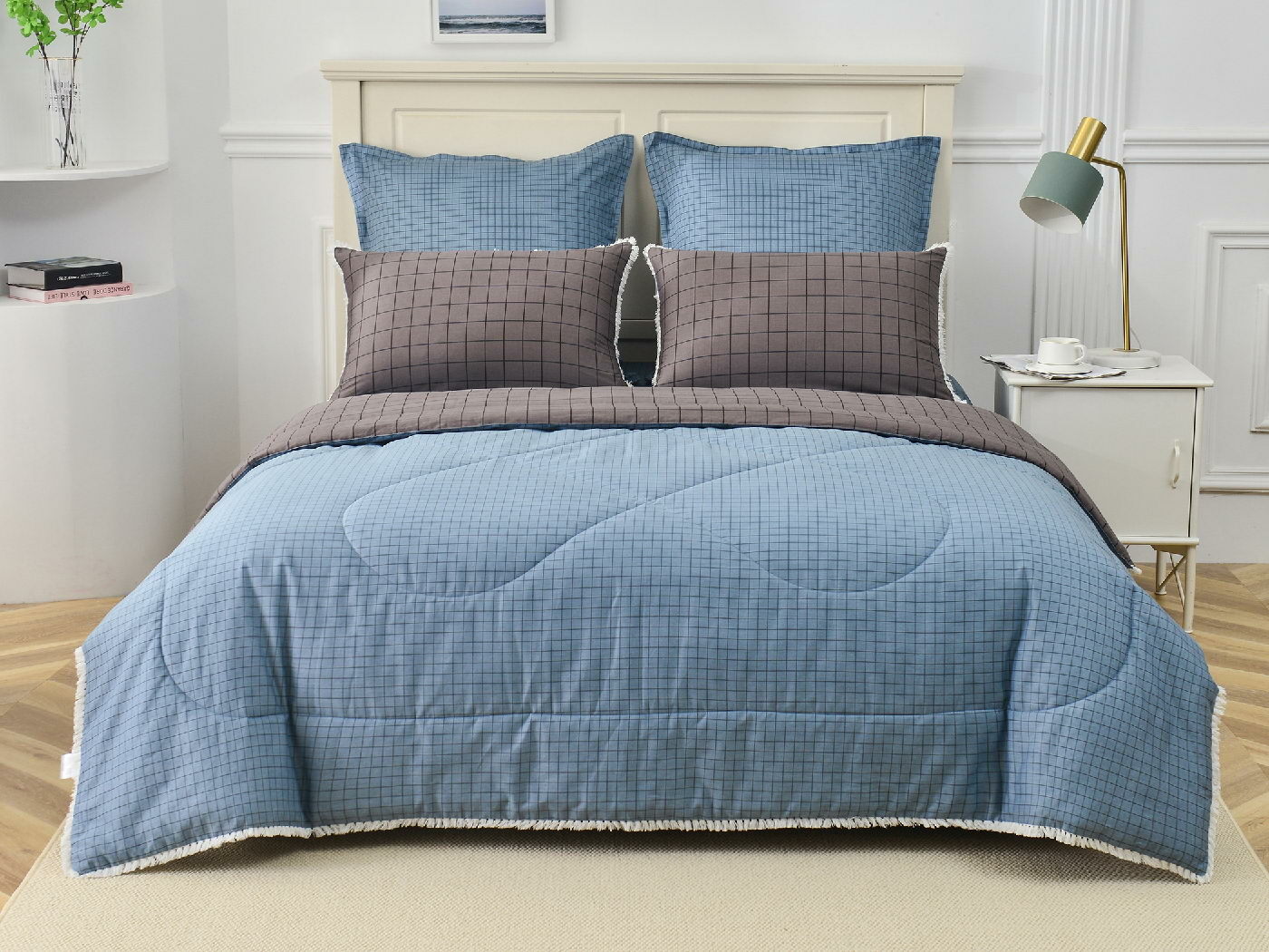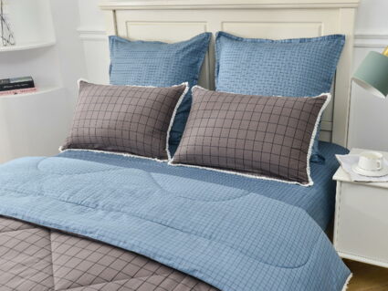 В комплекты комфортеров с одеялом Бернадетт входят наволочки, простыня и легкое всесезонное одеяло. Оцените это современное и очень удобное решение, которое идеально подходит тем, кто не любит возиться с пододеяльниками.