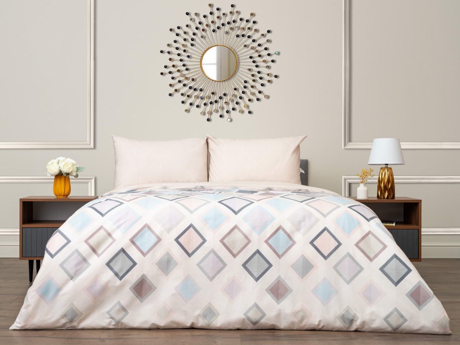 Комплект постельного белья Мэгги – это прекрасное сочетание цены и качества. Комплект порадует многообразием цветов и принтов. Геометрия или цветочные узоры – вы с легкостью подберете нужный комплект! Двусторонний пододеяльник можно стелить лицевой или оборотной стороной, в зависимости от настроения.