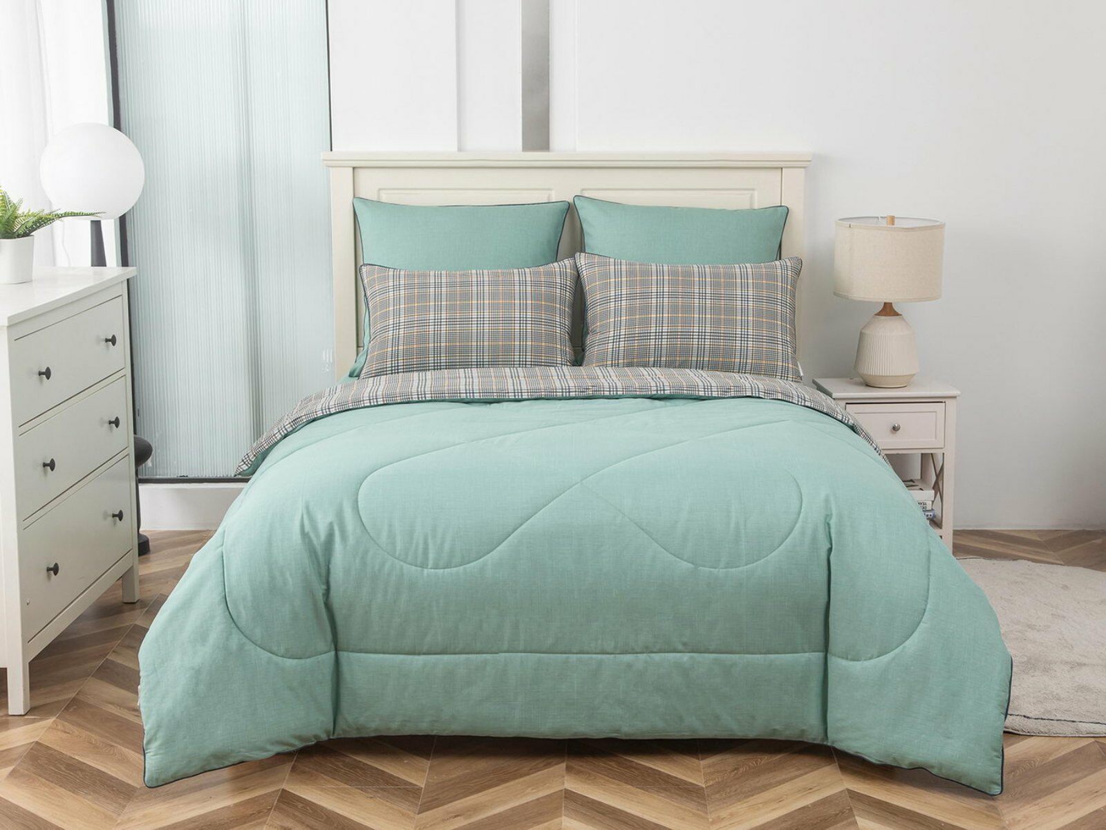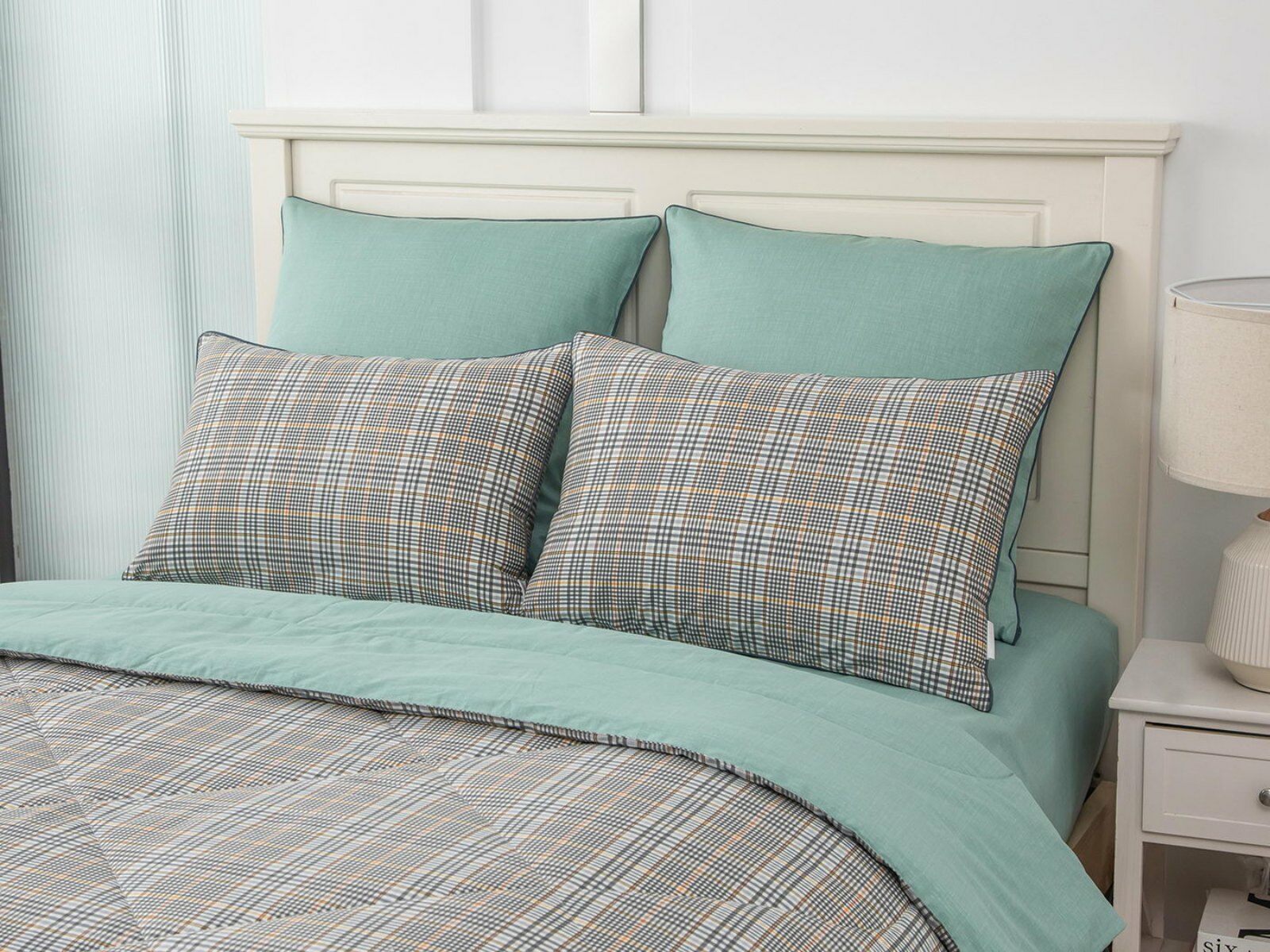 Особенность: двусторонняя модель, наволочки и одеяла декорированы кантом.
