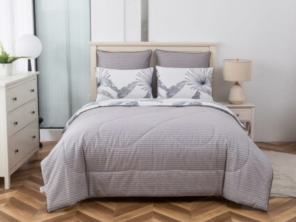 В комплект входит легкое, мягкое, летнее одеяло. Его можно стирать вместе с другим бельем, оно быстро сохнет и после стирки его не нужно гладить.