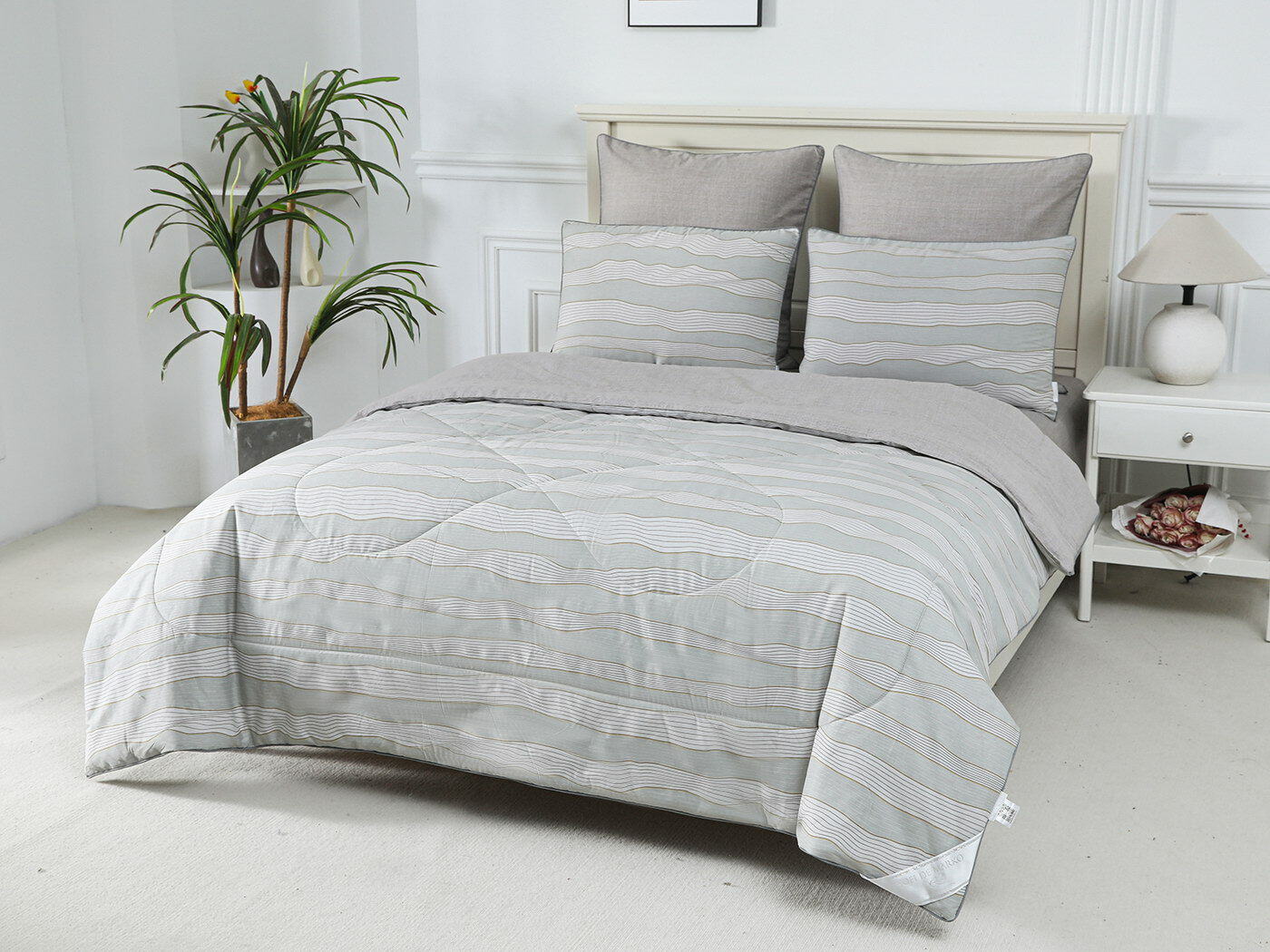Особенность: двусторонняя модель, наволочки и одеяла декорированы кантом.