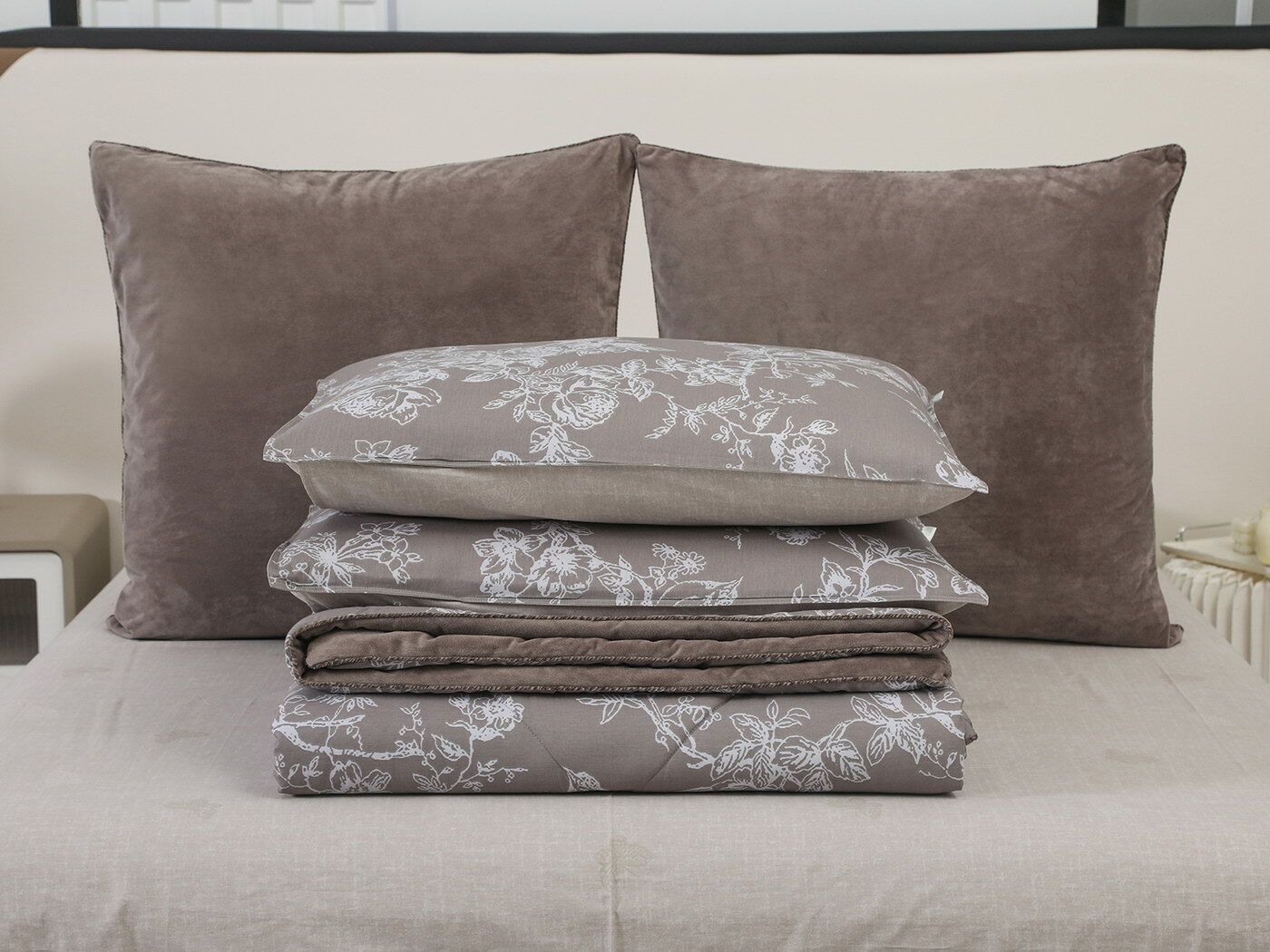 Новая коллекция комплектов «Роберто» с одеялом из однотонного велюра и принтованного сатина.