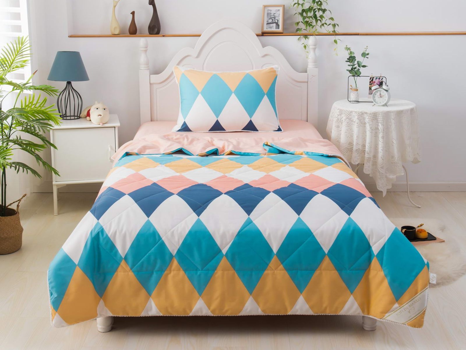 Интернет-магазин СОН.РУ предлагает купить постельное белье с доставкой по Егорьевску . Комплект постельного белья Софи де Марко Ромбики (цветной) с одеялом 1,5-спальный размера 1,5-спальный стоит 15 120 ₽ . На товар действует скидка в размере %. Если у вас есть вопросы по гарантии, доставке и оплате, задавайте их менеджерам нашего кол-центра по телефону: 8 495 545-47-33 .
