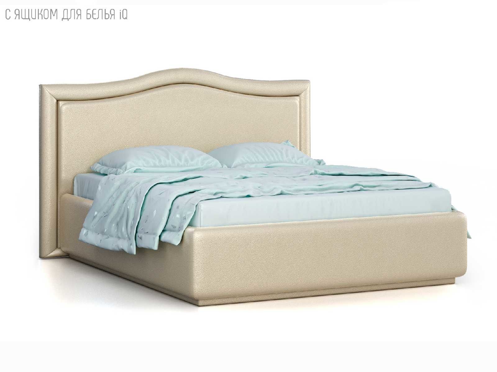 Кровать укомплектована IQ с подъемным механизмом и ящиком для белья без дна (дополнительная платная опция - дно к ящику IQ из HDF (ХДФ). Каркас кровати на цоколе, декоративный чехол на цоколе съёмный. Глубина ящика для белья - 30 см, без ограничения нагрузки на ящик.