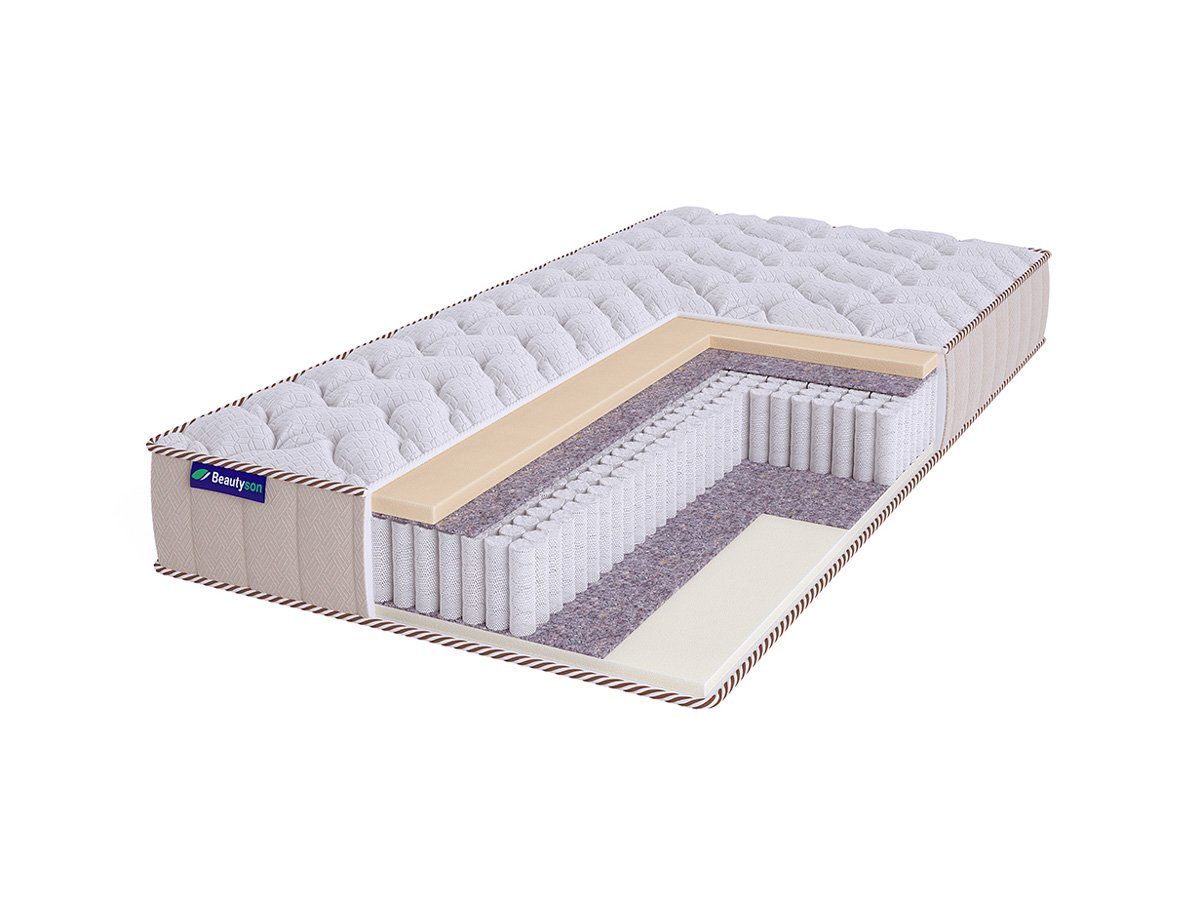 Матрас BeautyRoll Roll Spring Soft EcoLatex 2 S1200 LUX изготовлен по уникальной бесклеевой технологии производства, что делает его гипоаллергенным и безопасным для здоровья. Модель получила низкую жёсткость обеих сторон.