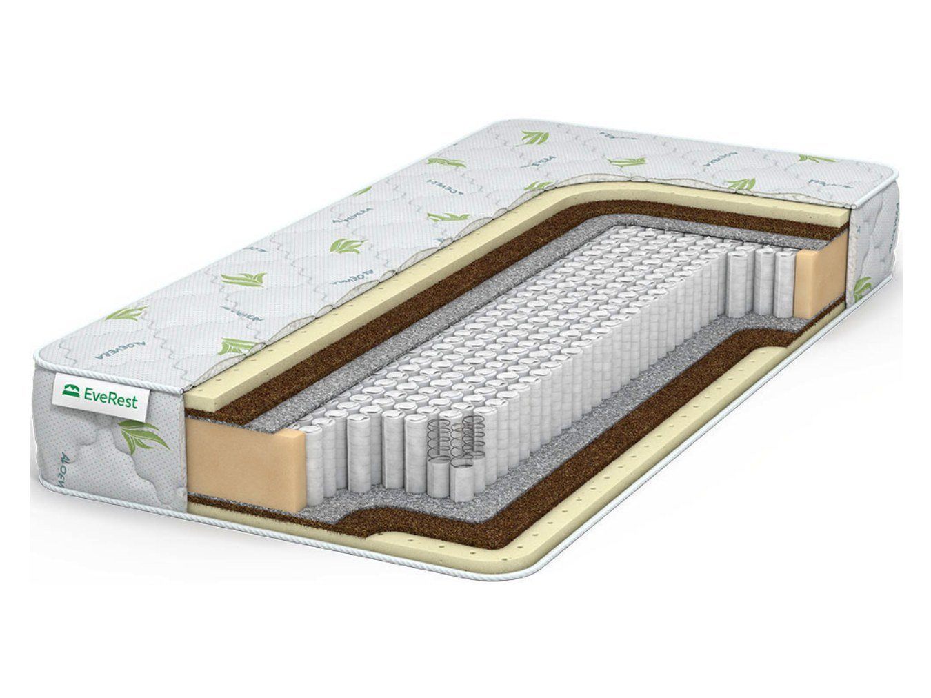 Матрас покрыт трикотажным чехлом, который прошёл пропитку экстрактом Aloe Vera для антибактериального эффекта.