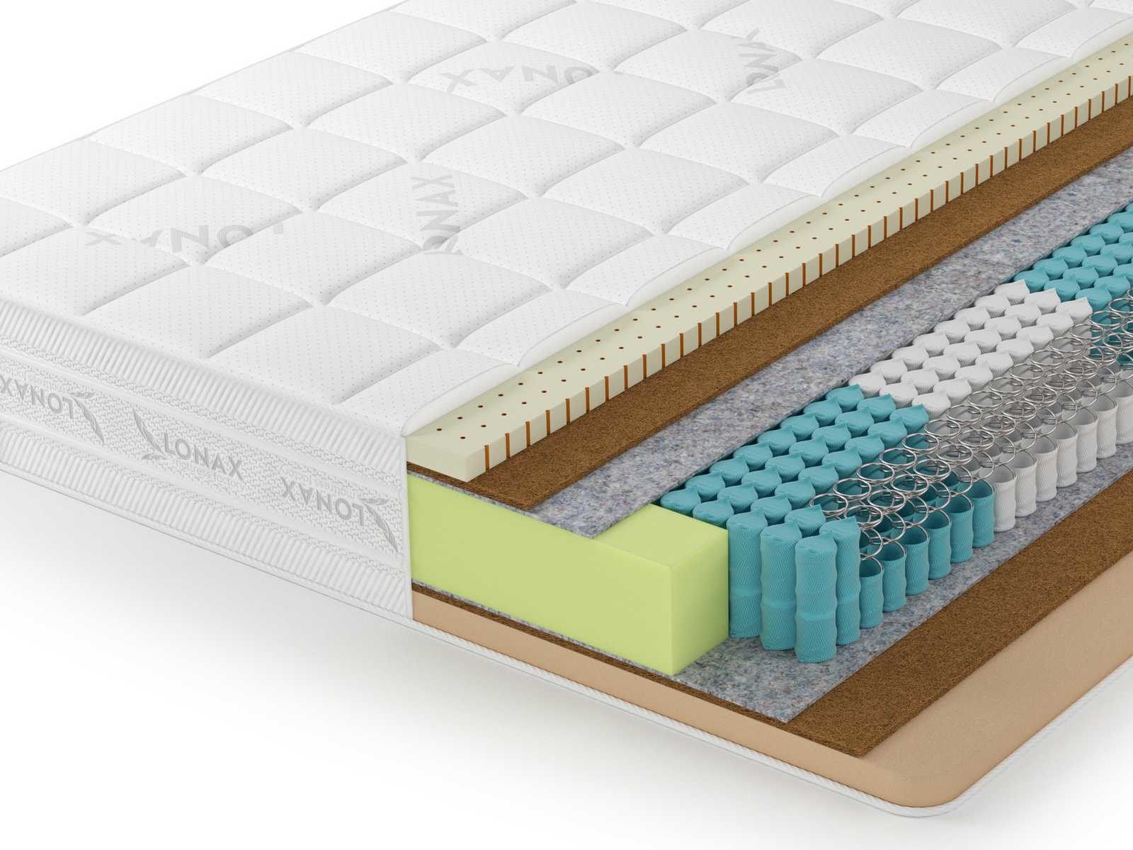Латекс и кокос – это классические наполнители, которые широко используются на протяжении последних десятилетий, а известны не одну сотню лет. Материалы великолепно дополняют и даже усиливают друг друга. Мягкая пена смягчает жёсткий кокос. А кокос же в сою очередь не позволяет мягкости быть чрезмерной и обеспечивает ортопедическую поддержку.
