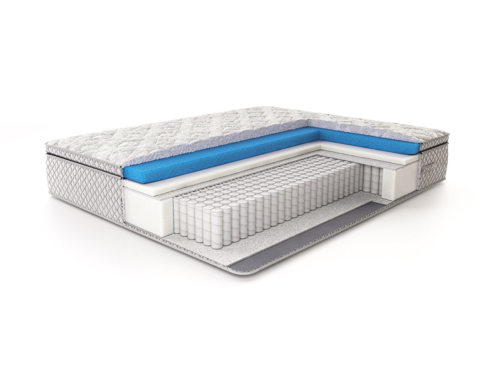 Роскошный рельефный чехол из жаккарда, простёганный по типу «слоёный пирог»: объёмное гипоаллергенное волокно холлкон 300 гр., ППУ 1 см, спанбонд — максимальный первоначальный комфорт. Чехол матраса несъемный.