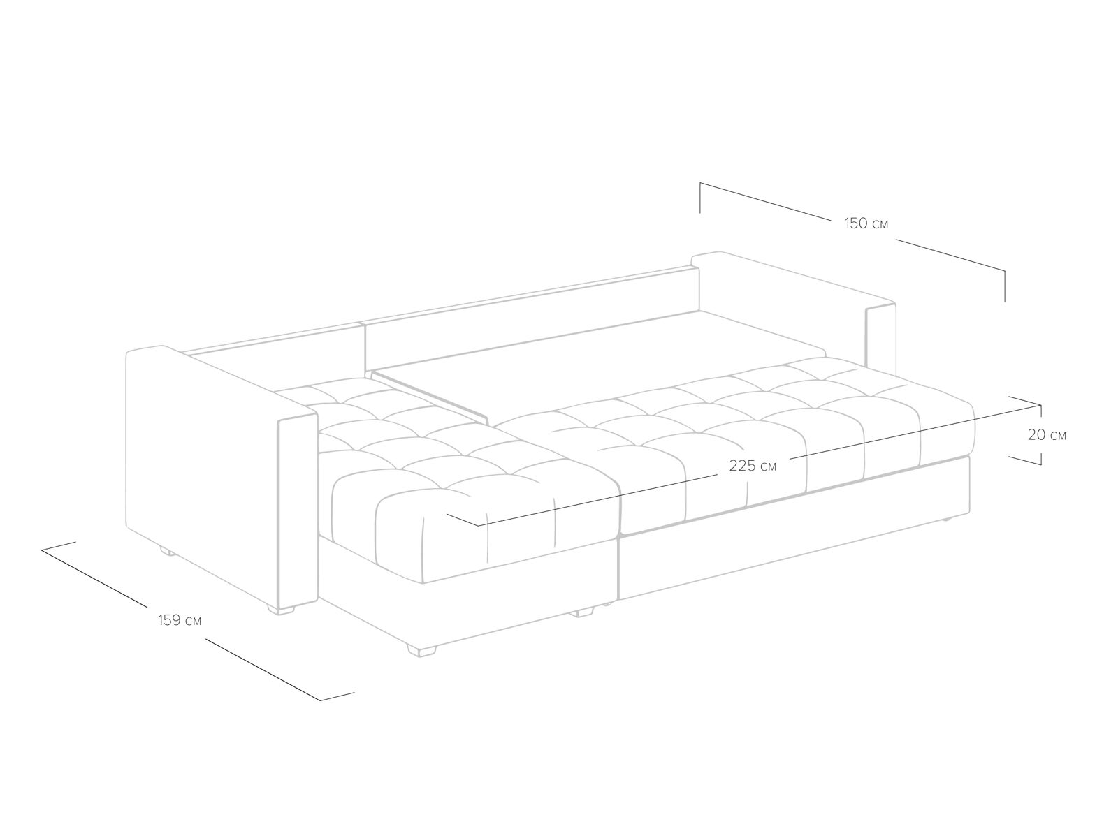Размер спального места: 150-225