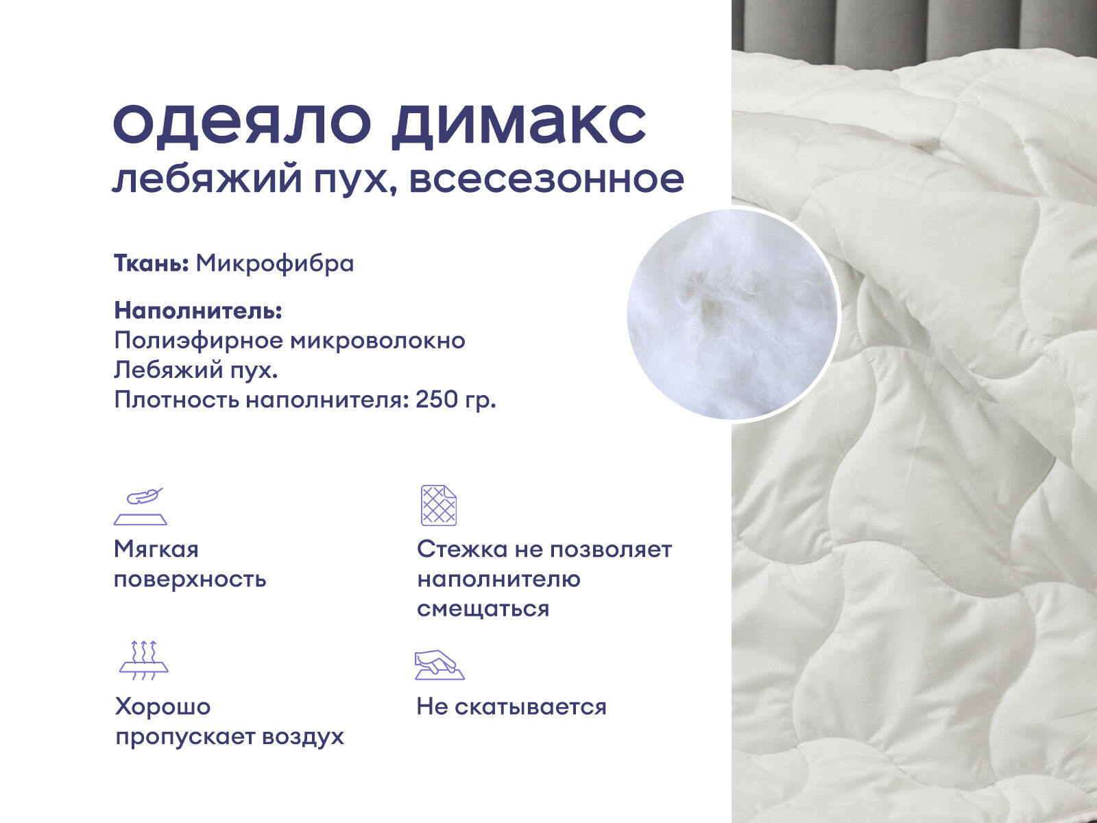 Оптимальный аксессуар для самых чувствительных людей, который максимально прост в уходе! Летом одеяло обеспечит комфортный сон, а зимой согреет в холодные ночи. Умеренная плотность наполнителя позволяет коже дышать, предотвращая перегрев и излишнюю потливость. Благодаря нейтральности материалов, одеяло идеально подходит для людей с чувствительной кожей и аллергиков. Инновационный наполнитель «Лебяжий пух», не вызывает аллергических реакций и очень прост в эксплуатации.