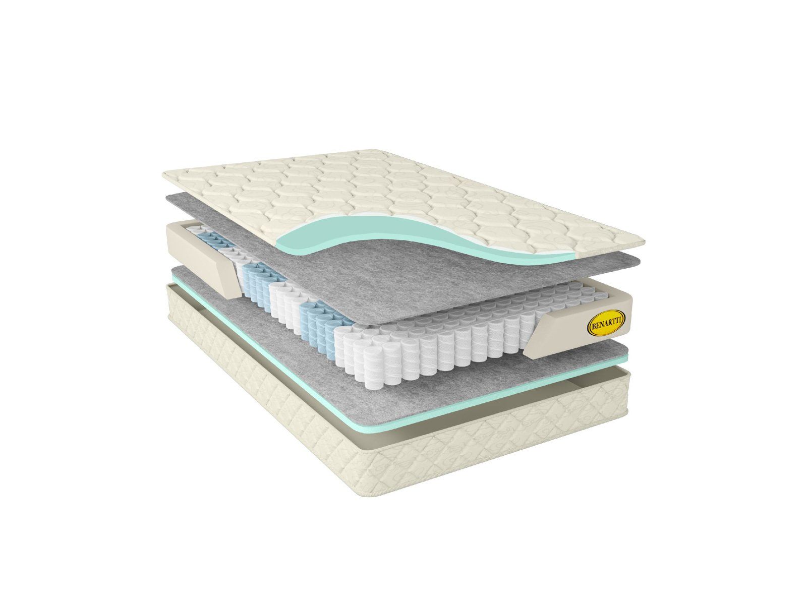 Обивка модели изготавливается из жаккарда, который проходит специальную пропитку антибактериальным составом SANITIZED. Затем ткань и два подкладочных слоя из холлкона и искусственного латекса ромбовидно соединяют стёжкой. В результате матрас не только приобретает приятную мягкость, но и уютный пышный внешний облик.