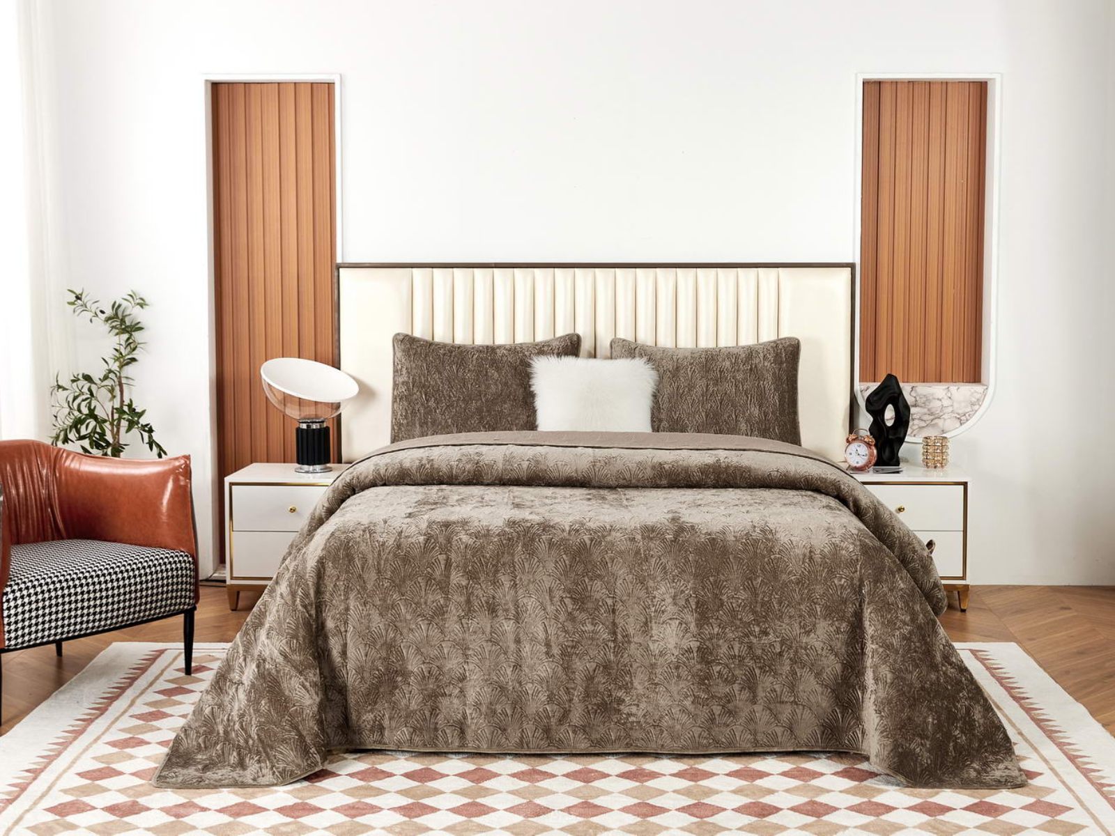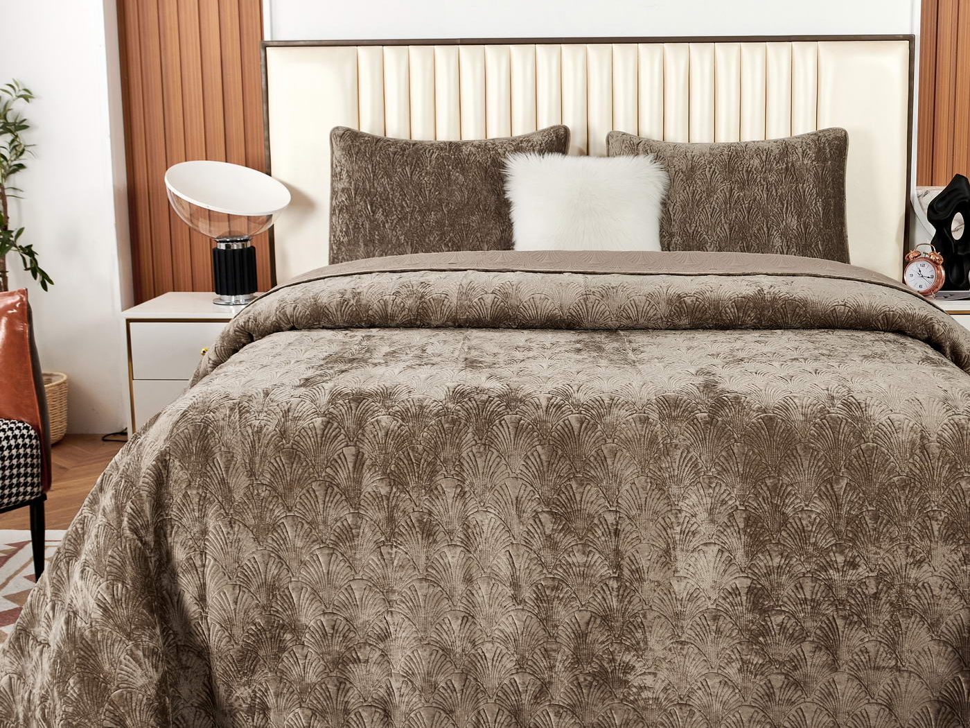 Очаровательное покрывало "Розалин" – идеальный спутник вашего отдыха и уюта. Это воплощение комфорта и стиля создано из высококачественного бархата в различных трендовых цветах и обязательно подчеркнёт уникальность вашего интерьера.