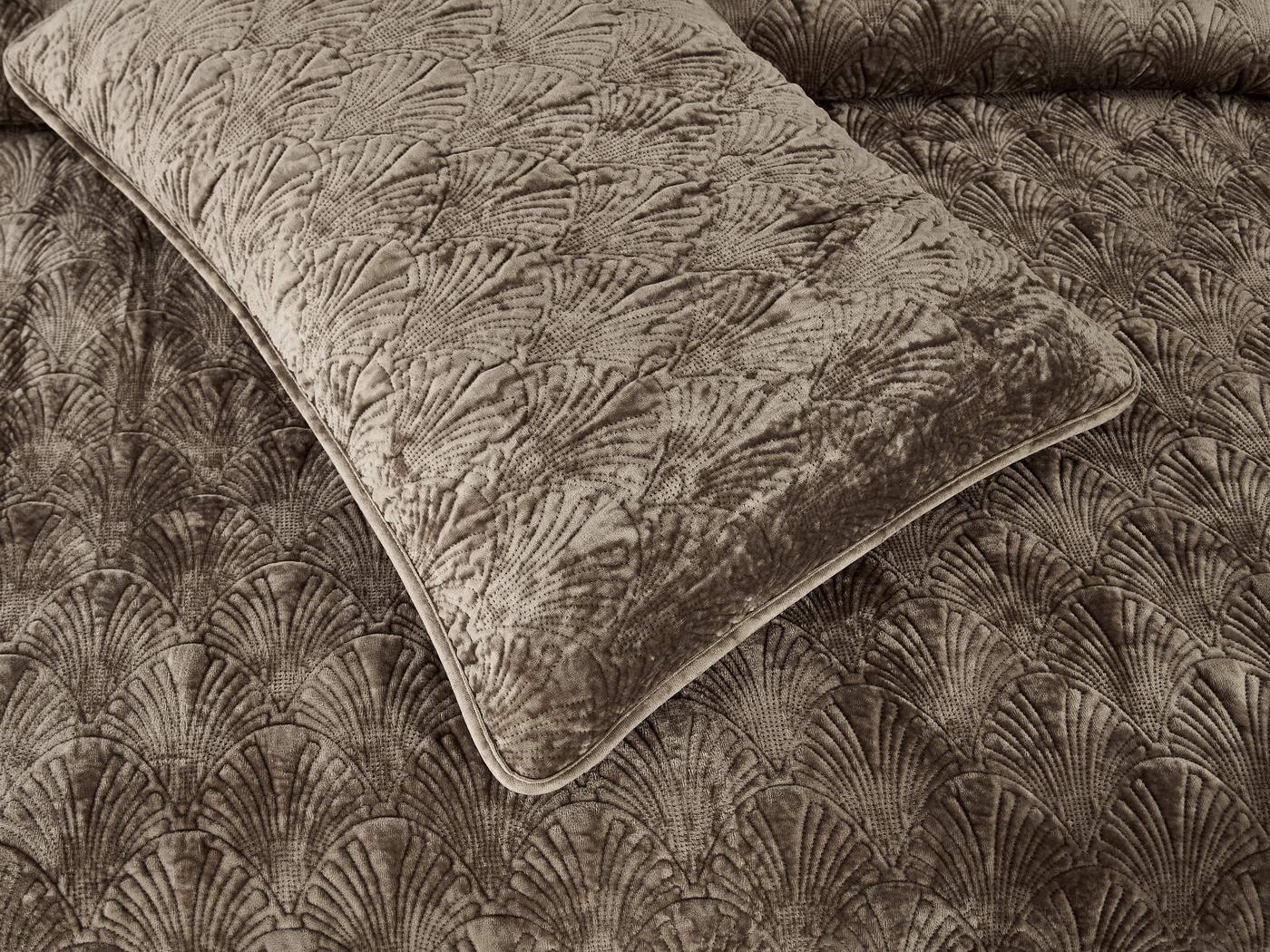 Бархатная ткань из 100% вискозы, придаёт покрывалу невероятную нежность и элегантность. Микроволокно в качестве наполнителя создаёт лёгкость и тепло, обеспечивая вам приятные моменты покоя.