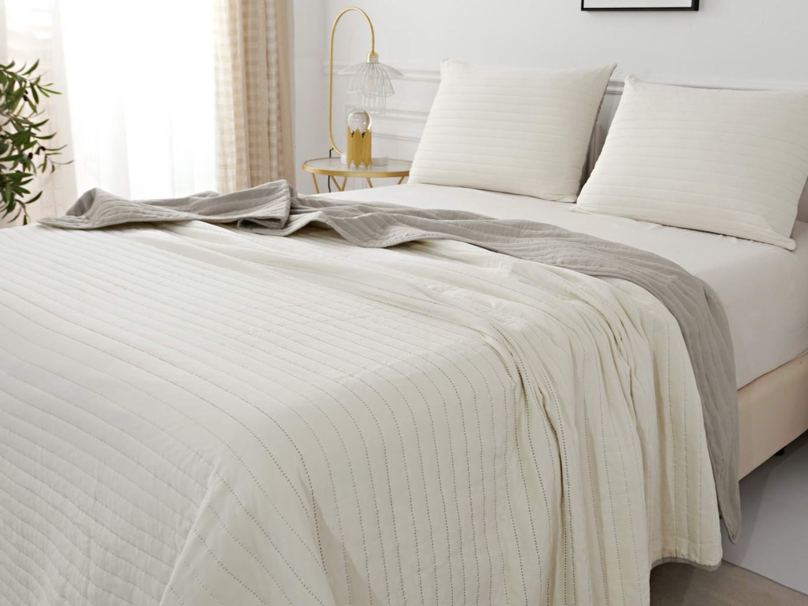 Двусторонние стеганные покрывала Самуэль выполнены из вискозы и хлопка, они легкие и прочные. В комплект входят покрывало и одна либо две наволочки (50х70 см) из аналогичного материала в зависимости от размера, вы можете использовать покрывало по назначению, либо в качестве постельного белья. В любом случае, вы будете в восторге от этого комплекта!